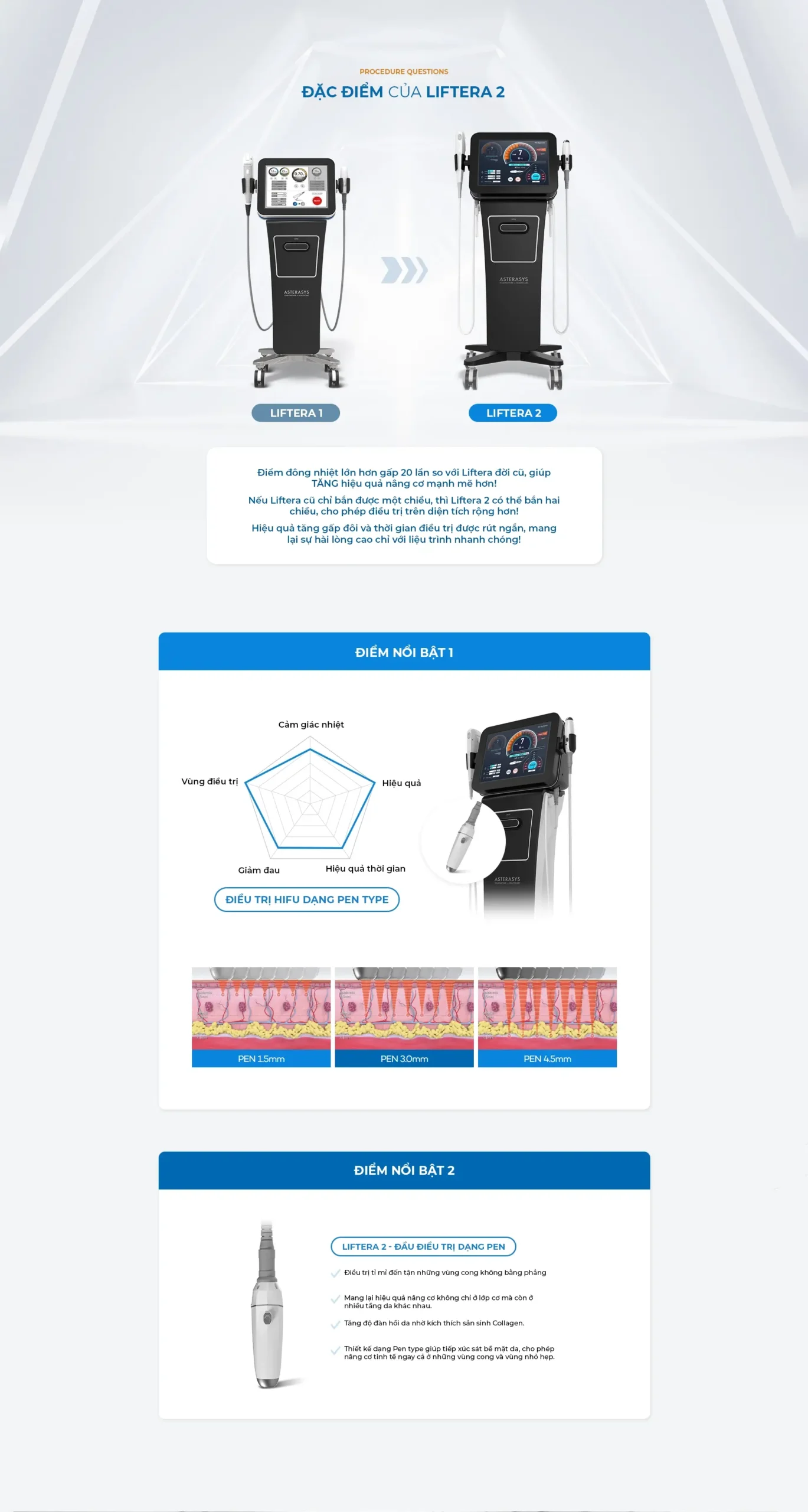 Năng lượng HIFU của Liftera 2 đi qua bề mặt da, truyền đến lớp cân cơ (SMAS) và mô cơ – nơi chứa Collagen, giúp kích thích sản sinh Collagen mà không gây tổn thương mô xung quanh, từ đó cải thiện tình trạng da chùng nhão do lão hóa.